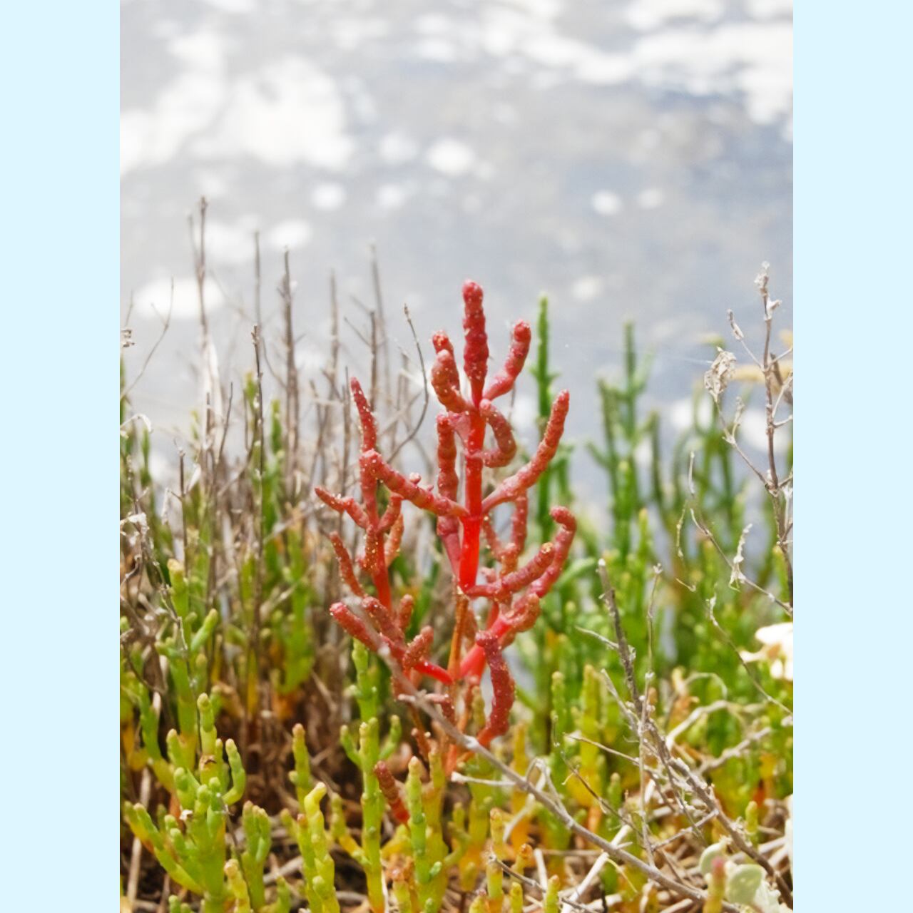 ↑塩田に咲く植物。食べられます。ほんのり塩気があり美味。