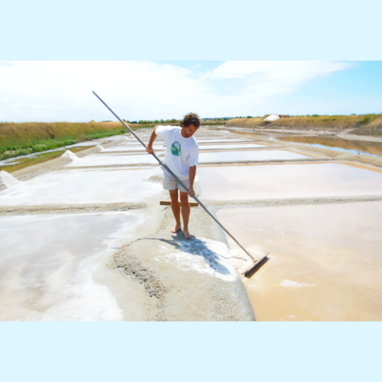 使用している塩田は1500年前からあったものですが、1960年代に塩作りが一度途絶えてしまったのを、2005年に塩田に魅せられたBenoît(ベノワ)とMatthieu(マチュー)の若者二人が再生して創業したブランドです。現在はAnne(アンヌ)とDamien(ダミアン)を含む4人の共同経営者によって運営されています。彼らは太陽と風の力のみを利用した伝統的な製法で、フルール・ド・セル(塩の花)や粗塩、サリコルヌ(塩生植物)を生産しています。
