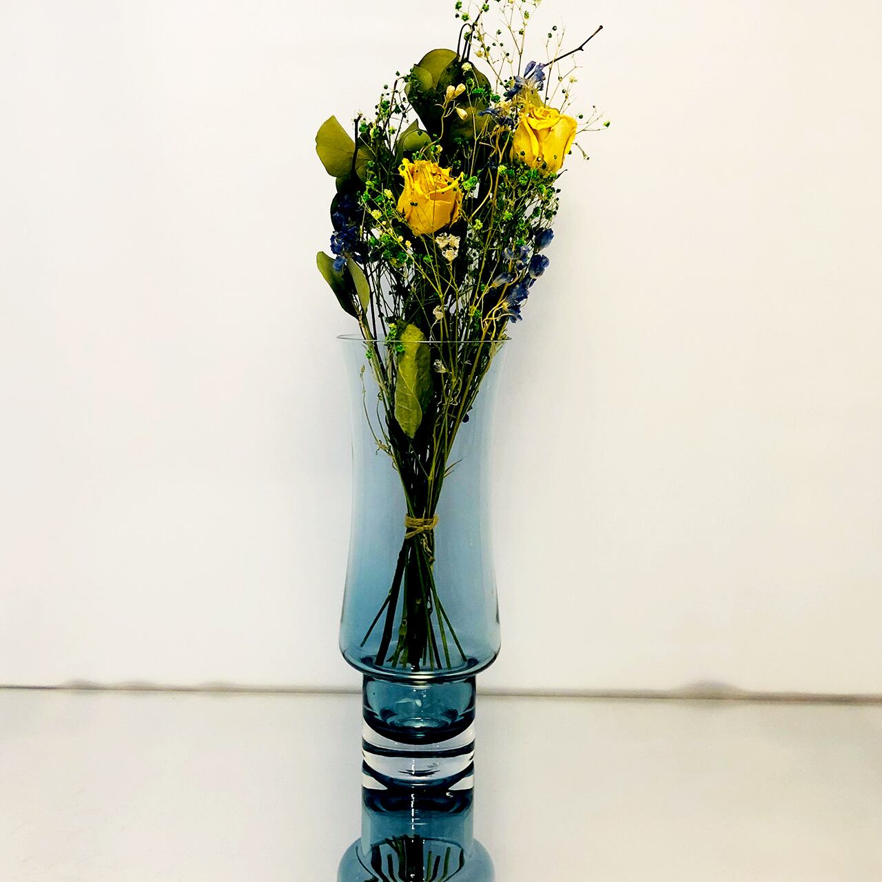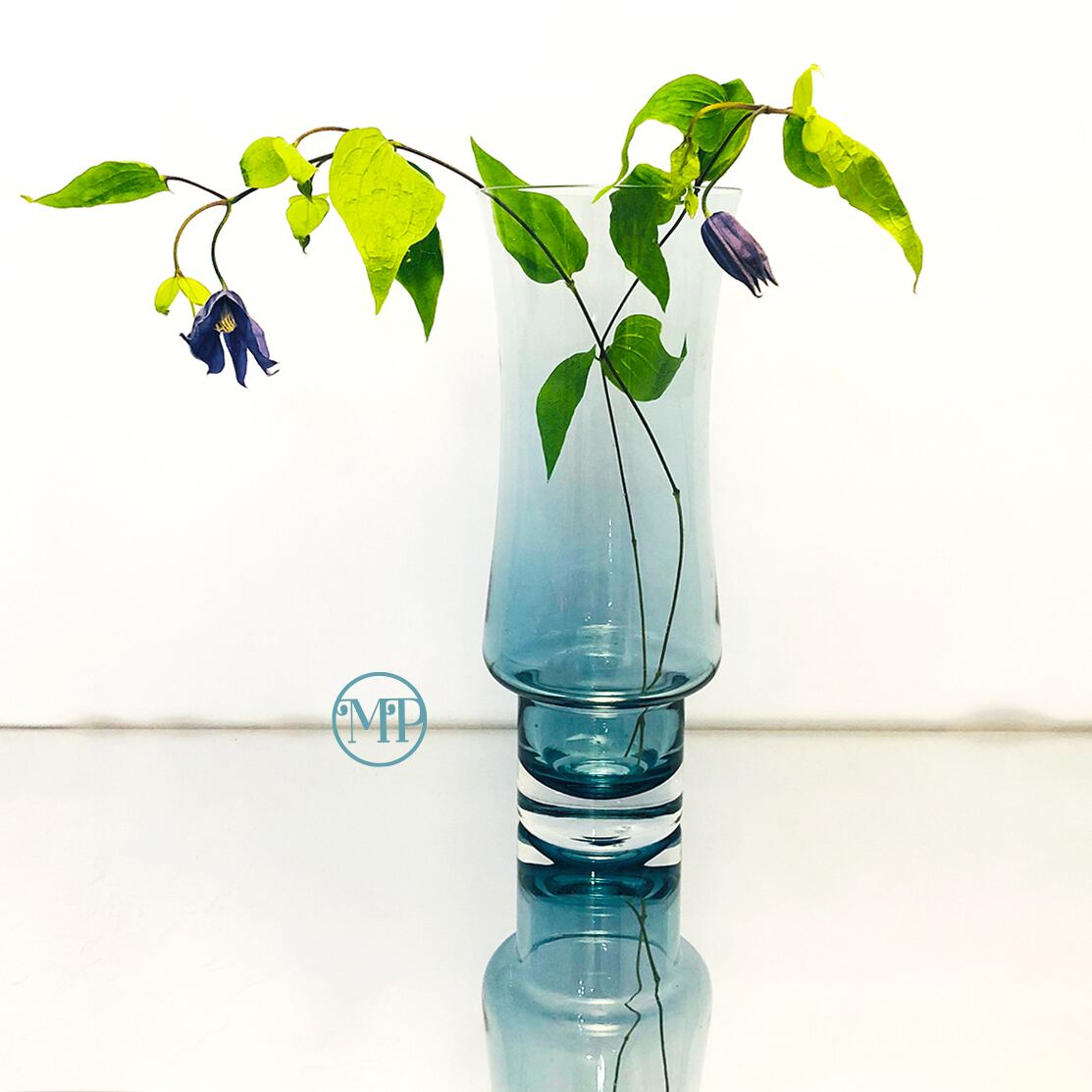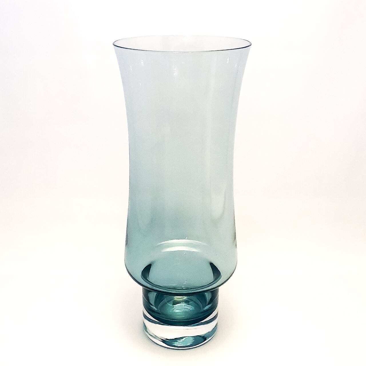 ミッドセンチュリーのスカンジナビアンアートガラスのスモーキーブルーの花瓶になります。スモーキーで落ち着いた色味なので、季節を問わずお使いいただけます。おそらくフィンランドのRiihimaen Lasi社のためにTamara Aladinがデザインしたものだと思われます。ハンドメイドならでは優しさを感じさせつつも、モダンなスタイリッシュさも併せ持つ花瓶です。もちろんお花を生けずにそのままオブジェとして飾っていただくのも素敵です。