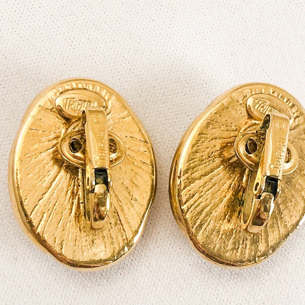 Vintage Crown TRIFARI Warm White Cabochon Gold Tone Earrings