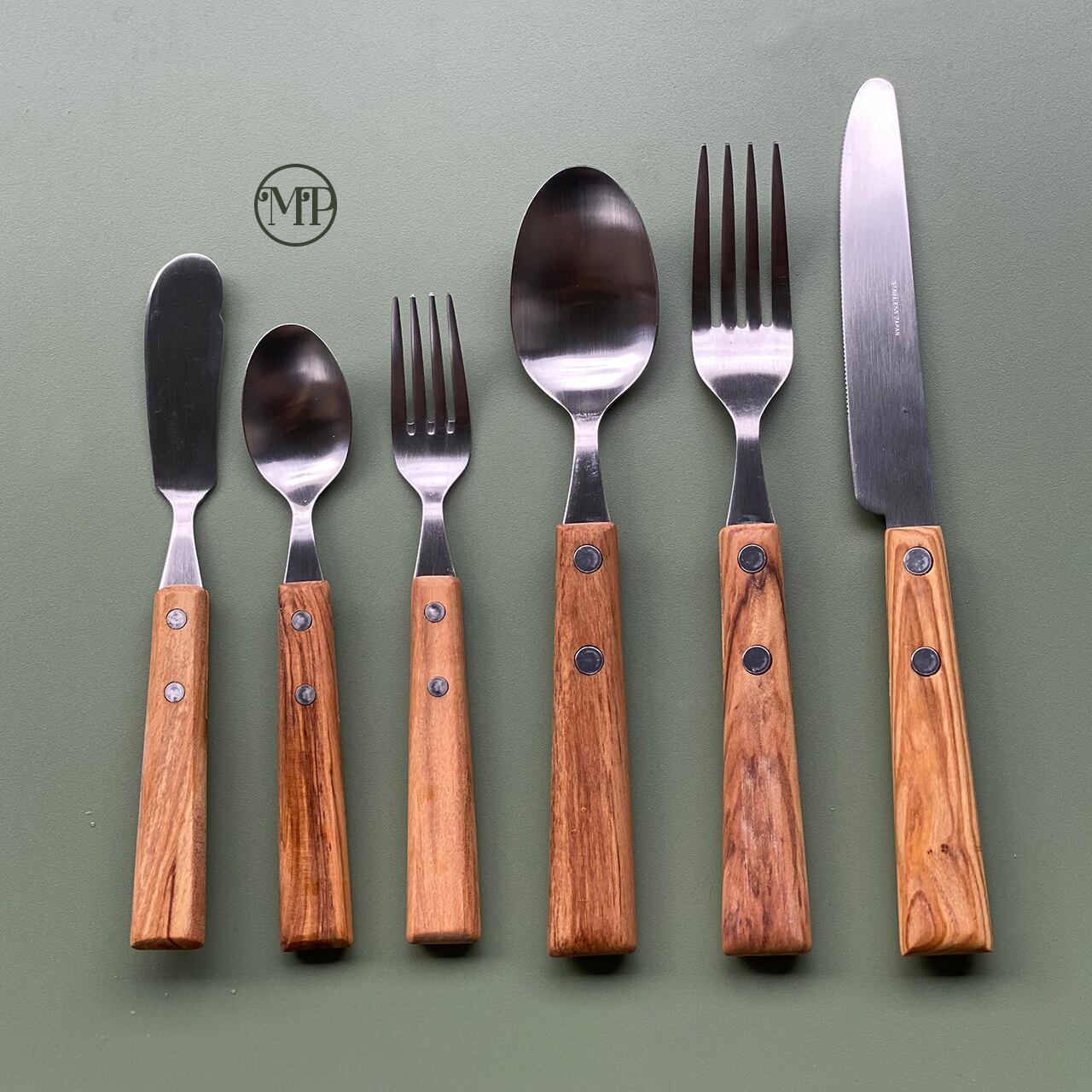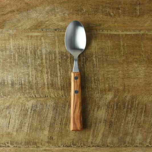 イタリア産オリーブウッドの上質でナチュラルな手触りと、ステンレスのコンビネーションが美しいカトラリーシーズ。燕三条市で作られているので、品質も確かです。